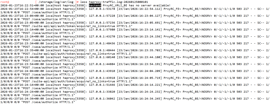Check the haproxy-traffic.log at the location /storage/log/var/log on the Cloud Proxy VM after you SSH into it as root